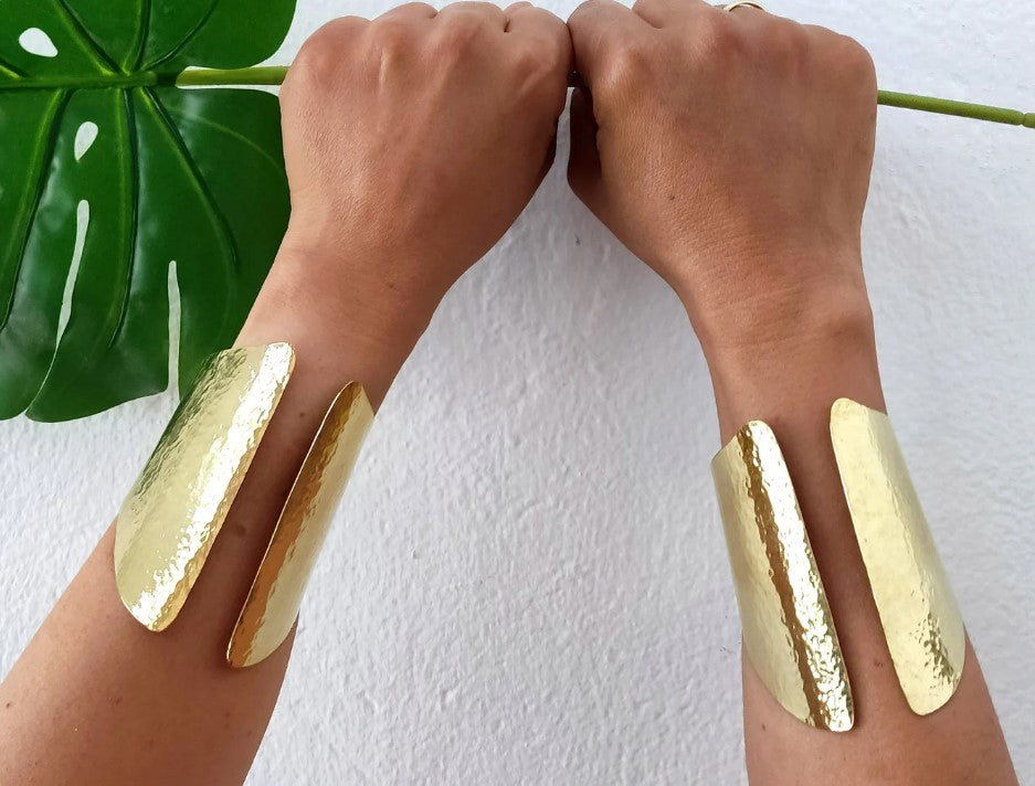 Aversa-Gold extra wide cuff bracelet, armor huge forearm cuff bracelet