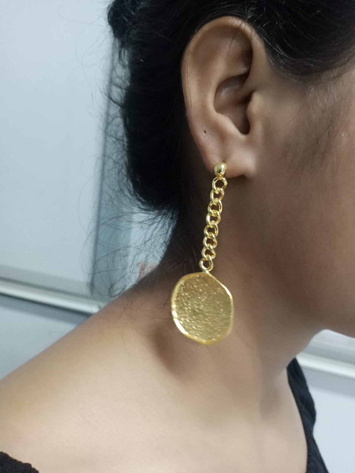 These Organic coin chain earrings are plated on 21ct gold on recycled brass and feature a vintage look Greek coin. With a minimal design, a beautiful thick handmade chain and Greek coin are the perfect accessory for any outfit. Must-Have piece from Vezoora