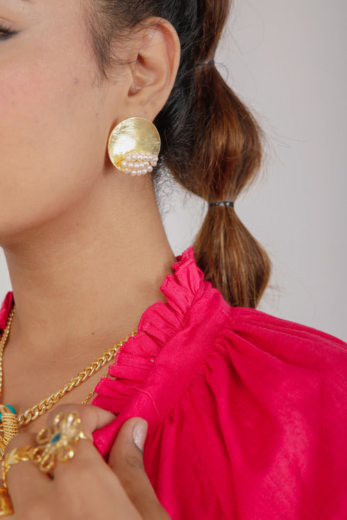 Embrace organic details with these irregular shaped earrings. Crafted with great care in designing. Easy to style and stack, this pair will elevate your day to evening looks.